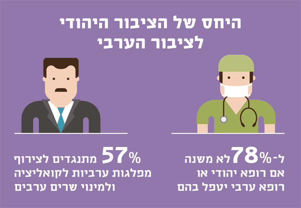 ועם זאת, נתוני הסקר נותנים מקום מסוים לתקווה. בשאלות לגבי מפגש החיים היומיומי שבין יהודים וערבים במדינה הביעו שני הצדדים עמדות סובלניות למדי, אולי אפילו מפתיעות. לרוב גדול מן היהודים לא מפריע אם בבית החולים יטפל בהם רופא ערבי (78%), או שמורות ערביות ילמדו את ילדיהם בבתי הספר (74%). רובם גם תומכים בתרגום לערבית של כל שלטי החוצות (61%), בהוראות השפה הערבית לתלמידים יהודים בחינוך היסודי (63%), ובמתן ייצוג הולם לערבים בשירות המדינה (55%). חשוב במיוחד שבנושאים אלה גם דתיים ואנשי ימין – אשר בשאלות אחרות גילו חשדנות כלפי הציבור הערבי – הביעו עמדות מתונות ומקבלות.