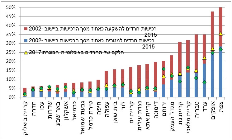 מול חלקם באוכלוסיית היישוב (2002, 2017)