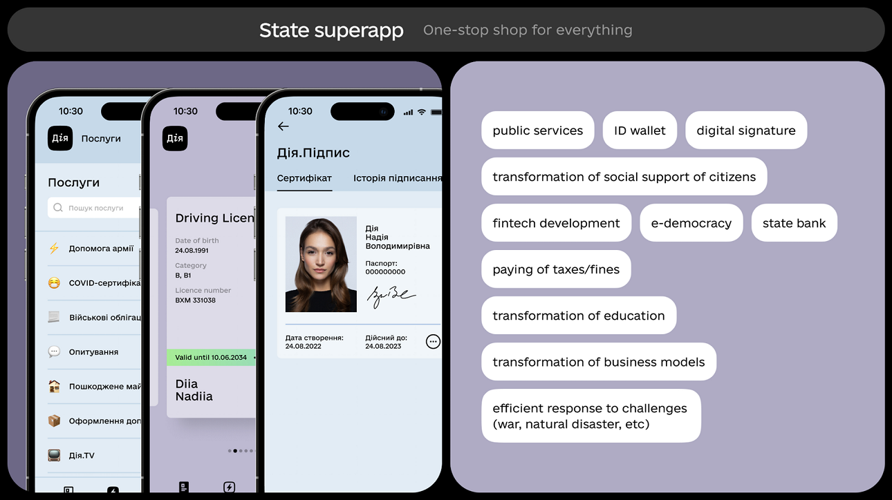"מדינה בתוך הסמארטפון": דייה (Diia) היא פלטפורמה דיגיטלית ציבורית למתן יותר מ-130 שירותים מקוונים לאזרחים אוקראינים. היא נועדה להנגיש שירותים לציבור ולעודד שקיפות ואמון בממשלה דרך ייעול התקשורת בין גורמים ממשלתיים ואזרחים במתן מענה לרווחת הציבור