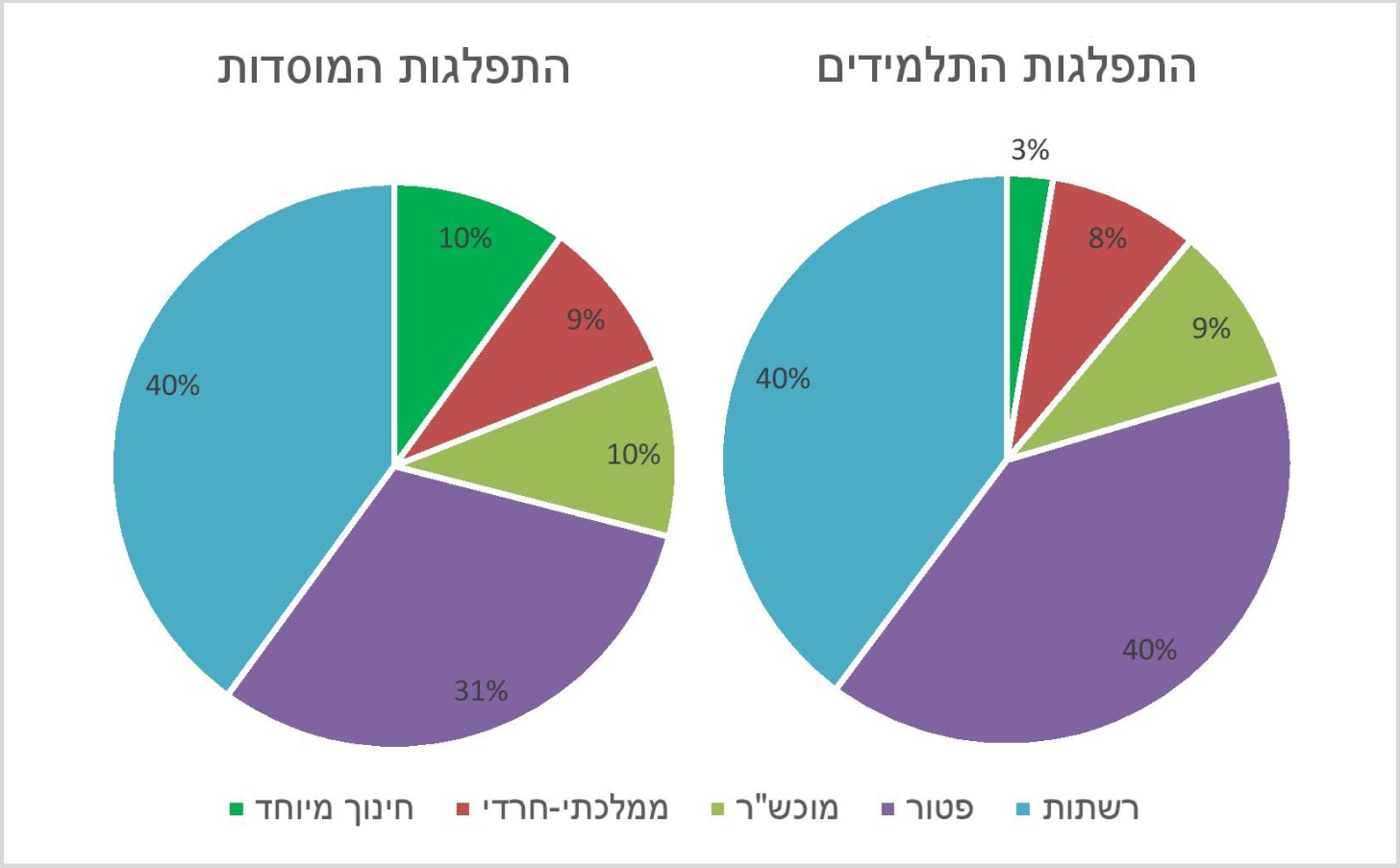 חינוך מיוחד. נוסף לכל אלו ישנם גם מוסדות חינוך מיוחד שאינם משויכים לאחת מהרשתות או מסוגי המוסדות הנזכרים לעיל.