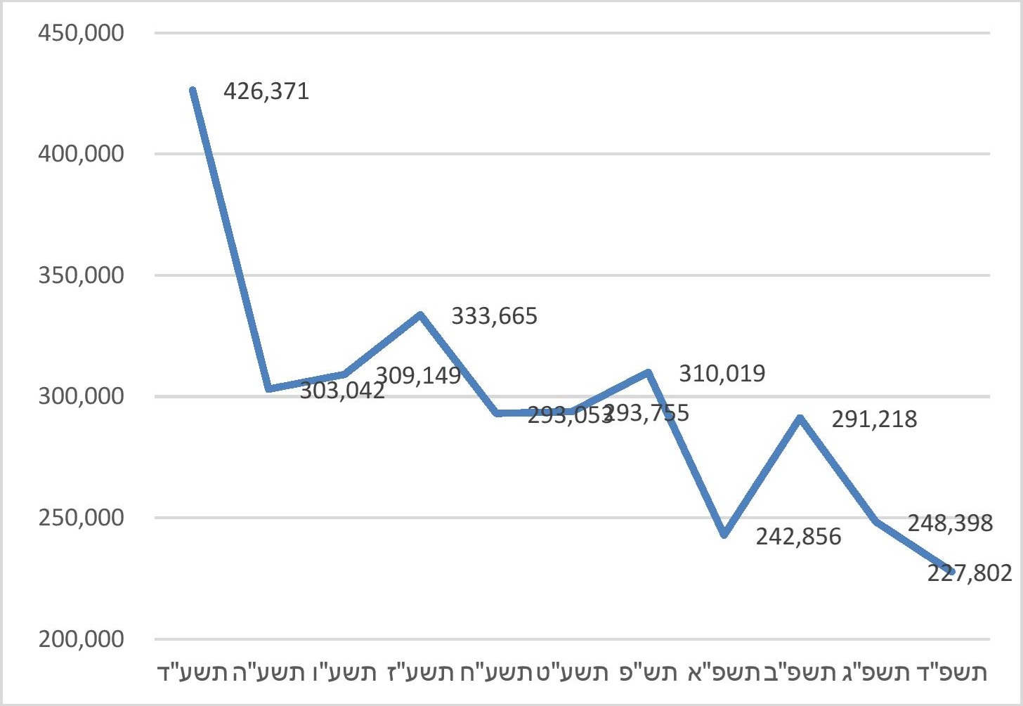 קווי המגמה מלמדים שבשנים תשע"ד-תשע"ז היקף הקיזוז עמד על כ-15 מיליון ש"ח, ולאחר מכן הוא ירד ועמד על כ-10 מיליון ש"ח; בשנת תשפ"ג הוא עלה שוב ל-13.7 מיליון ש"ח ובשנת תשפ"ד חזר ל-10 מיליון ש"ח. קו המגמה הכללי הוא של ירידה בהיקף הקיזוז, ולאור העלייה בסך התקציב לכל מוסד לאורך השנים, וכן העלייה במספר המוסדות והתלמידים לאורך השנים, הירידה הממשית גדולה עוד יותר.