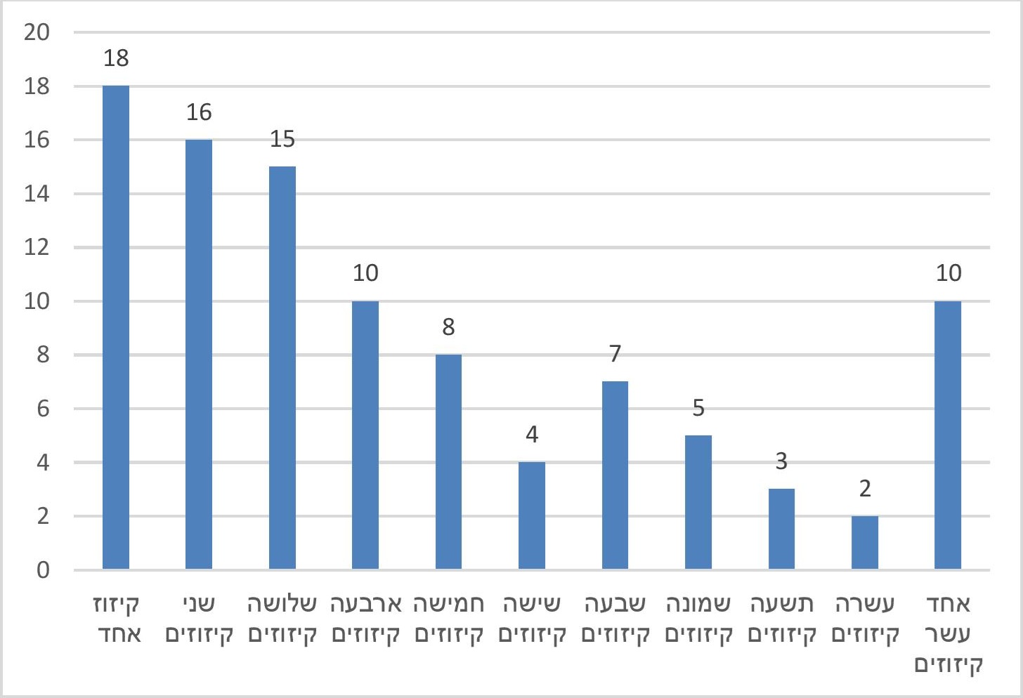 ניתן לראות כי רק ב-18 מהמוסדות שנערך להם קיזוז היה מדובר בקיזוז בשנה אחת בלבד, בעוד ביתר 80 המוסדות, שהם 82% מהמוסדות שקוזז מהם תקציב, נערך קיזוז ביותר משנה אחת. ברבים מהמוסדות נערך קיזוז במספר רב של שנים, וב-10 מוסדות (10%) נערך קיזוז בכל 11 השנים שיש לגביהן נתונים.שיעור זה אף גבוה יותר בפועל, מכיוון שיש מוסדות שלא היו פעילים לאורך כל השנים שנבדקו. ממצאים אלו מלמדים על תופעה של "עבריינות חוזרת", אך גם על העובדה שיש מוסדות שבמוצהר אינם מלמדים לימודי ליבה בהיקף הנדרש, והרשת משלמת בגינם מחיר תקציבי, בעוד יש מוסדות אחרים שאינם מלמדים לימודי ליבה בהיקף הנדרש, ובכל זאת לא נערך להם קיזוז תקציבי.
