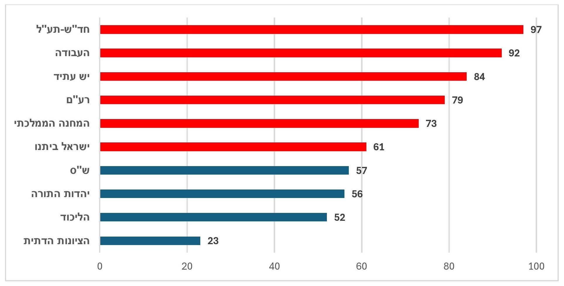 הערה: בכחול – מפלגות קואליציה, באדום – מפלגות אופוזיציה.