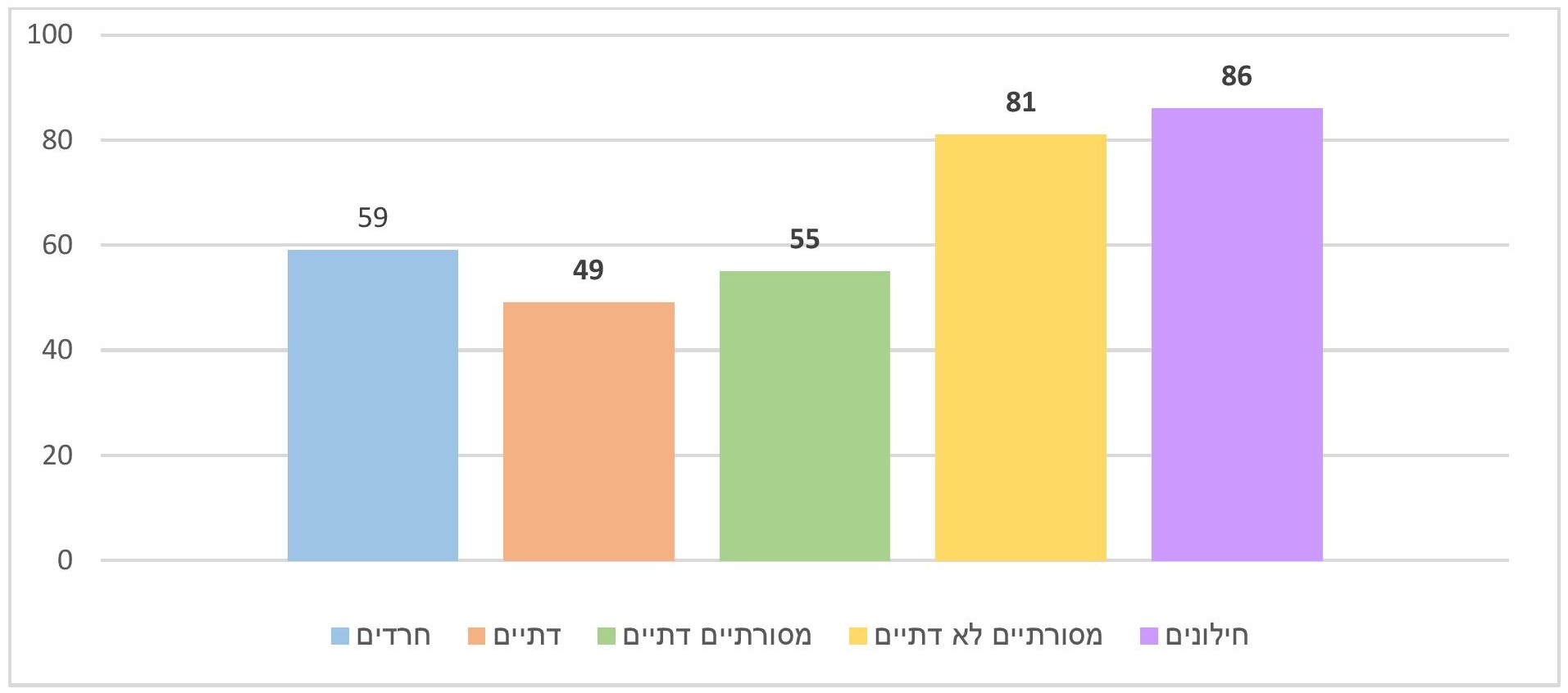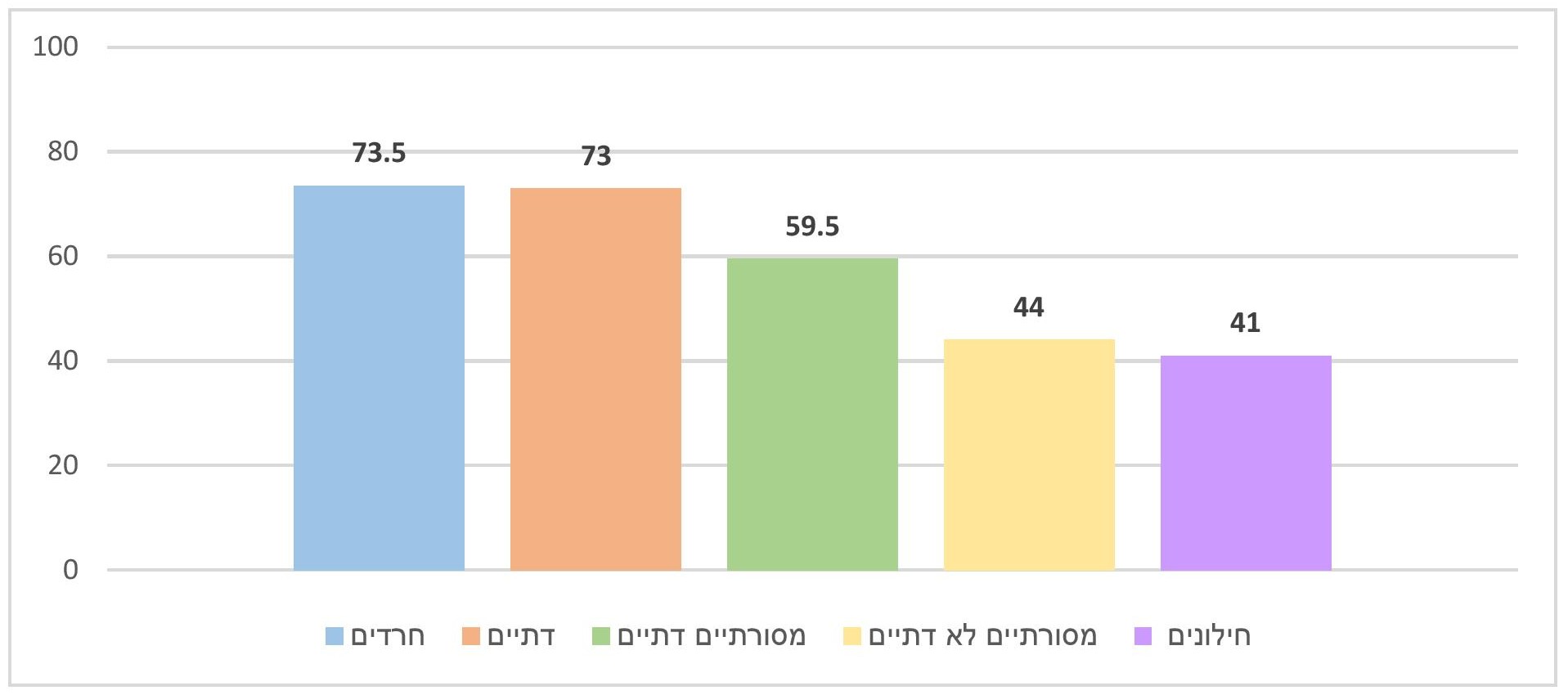 המרואיינים מהקבוצה החרדית והדתית מגדירים את מצב הרוח האישי שלהם כדי טוב או טוב מאוד בשיעור הגבוה ביותר והחילונים – בשיעור הנמוך ביותר.