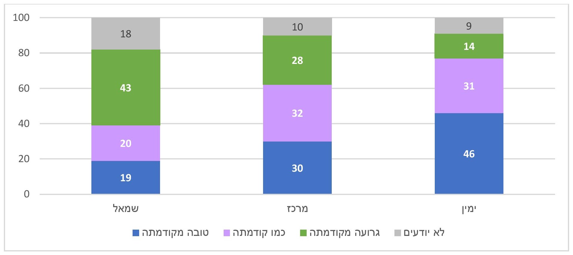 מצב הרוח הלאומי – הרוב בכלל הציבור (71%) מעריכים כי מצב הרוח הלאומי לקראת השנה הבאה כדי או מאוד ירוד. מעניין ששיעור המעריכים זאת כך בקרב היהודים גבוה במידה ניכרת מאשר בקרב הערבים (73% לעומת 58%). עם זאת, יש לציין כי כבר בשאלה דומה ששאלנו באוגוסט 2020 ובאוגוסט 2021, כלומר לפני ה-7 באוקטובר ומלחמת "חרבות ברזל" אבל תוך כדי המשבר הפוליטי הפנימי, מצאנו שהרוב העריכו שמצב הרוח הלאומי היה פסימי, כאשר גם אז אצל היהודים שיעור גבוה יותר מאשר אצל הערבים הרוב העריכו זאת כך.