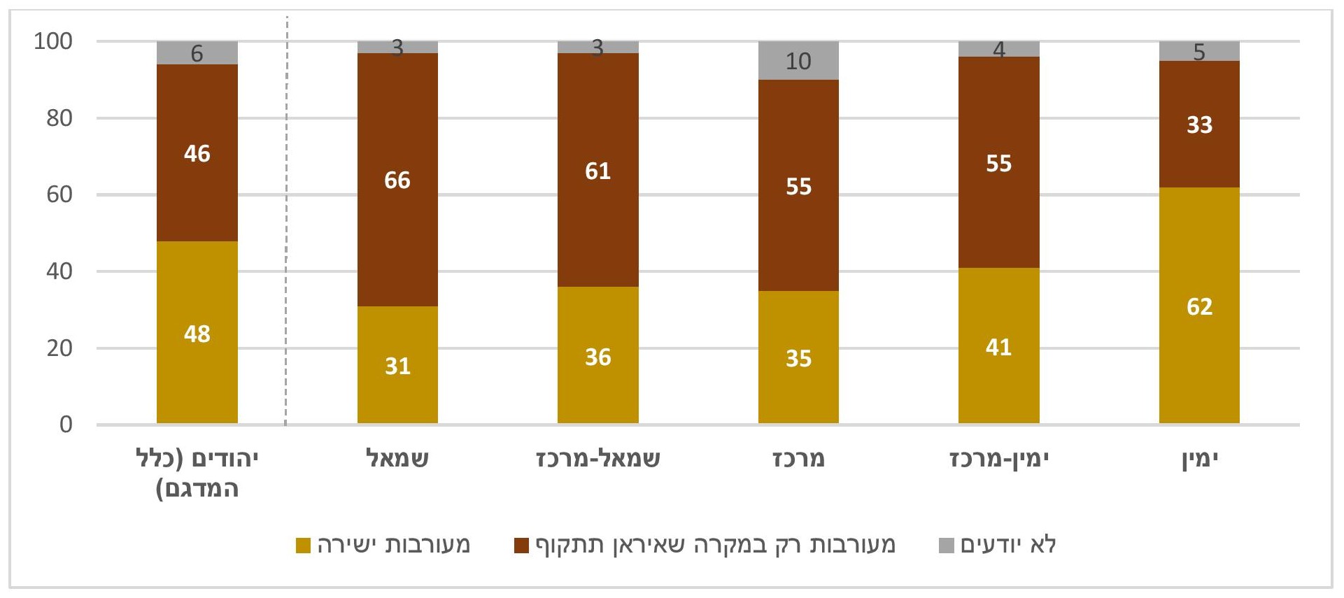 במקרה של מתקפה אמריקאית נגד איראן, איזו רמת מעורבות של ישראל רצויה ביותר? (%, יהודים)