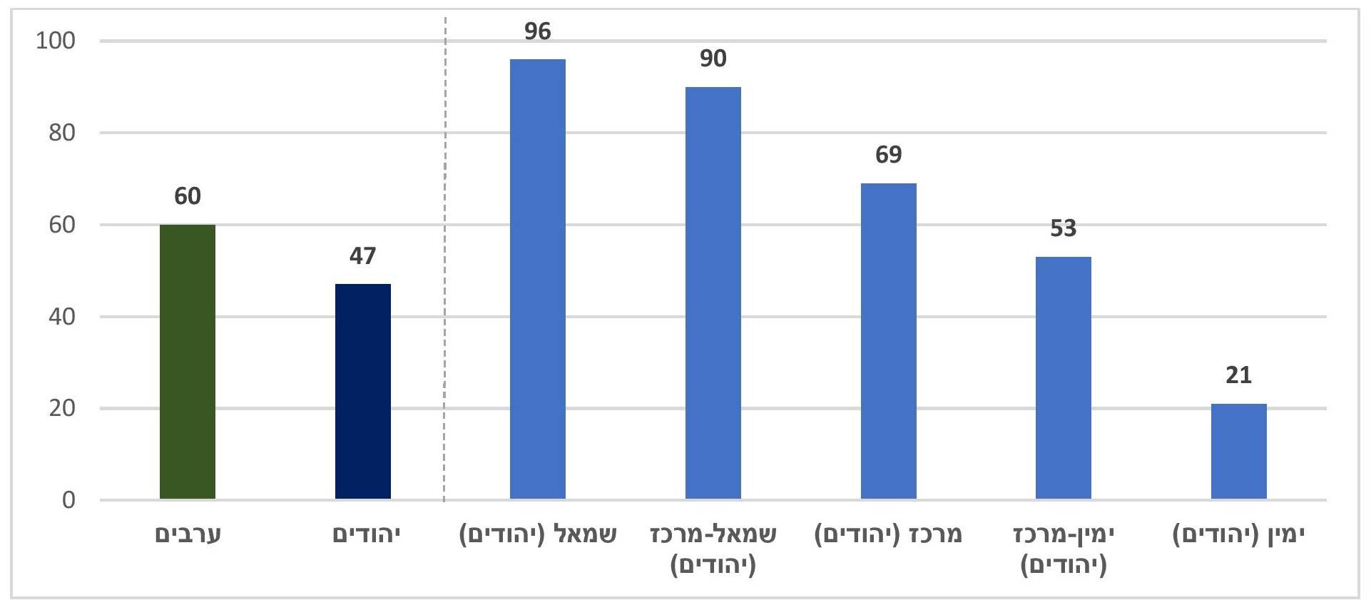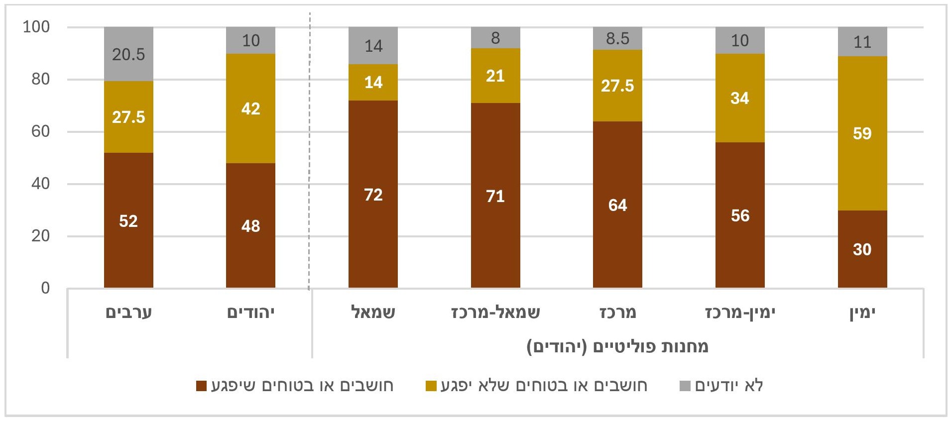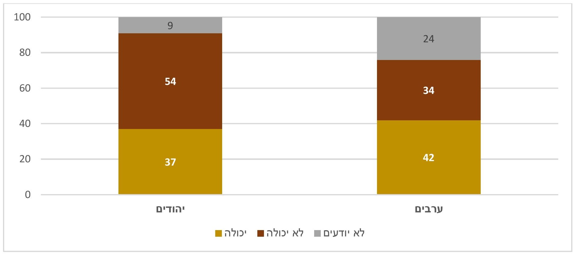 - בקרב היהודים והערבים כאחד, יש יתרון לסבורים שהדבר יפגע בביטחון המדינה (יהודים - 48% לעומת 42%; ערבים - 52% לעומת 27.5%).