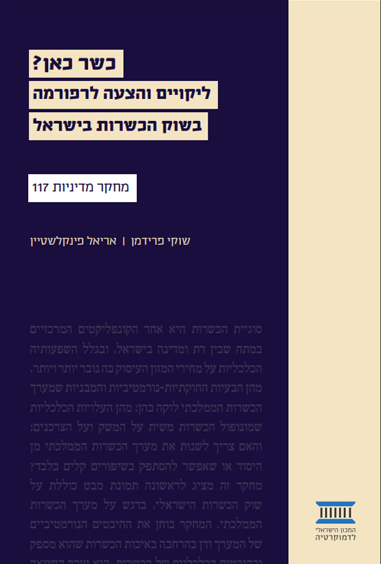 המחקר "כשר כאן?", מציג תמונת מבט כוללת על שוק הכשרות הישראלי, בדגש על מערך הכשרות הממלכתי. המחקר בוחן את איכות הכשרות שמספק מערך זה ואת ההיבטים הכלכליים שלו. הוא עורך השוואה בין דרכי הפעולה של שוק הכשרות הישראלי לאלו של שוק הכשרות האמריקאי ומציע רפורמה באופן אספקת שירותי הכשרות בישראל. לב הצעתו של מחקר זה, הינה הפרטה מלאה של שוק הכשרות הישראלי.