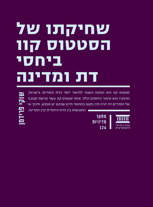 סטטוס קוו הוא המונח השגור לתיאור יחסי הדת והמדינה בישראל, וסיפורו הוא סיפור היחסים הללו. אותו סטטוס קוו עשוי מרשת סבוכה של הסדרים דה יורה ודה פקטו בתחומי חיים שבהם יש מפגש, חיכוך או התנגשות בין הדת היהודית ובין המדינה.