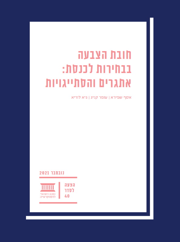 המסקנה העיקרית העולה מהמחקר היא שאין מקום לאמץ חובת הצבעה בישראל. מסקנה זו מתחייבת על שום העדר הנחיצות של הרפורמה הזו, באופן שיצדיק את הפגיעה בזכויות החוקתיות הגלומה בה. ייתכן שבעתיד, אם תהיה ירידה חדה ומתמשכת בשיעורי ההצבעה, יהיה מקום לשקול זאת, וגם אז – רק כחלק מרפורמה כללית בשיטת הממשל בישראל. לעומת זאת, אנו מציעים כבר עתה לקדם רפורמות שיסייעו להעלות את שיעורי ההצבעה בבחירות – בעיקר הגברת הנגישות והגמישות בבחירות )גמישות במקום ההצבעה, הוספת קלפיות ניידות, הרחבת מנגנון ההצבעה המוקדמת( והרחבת זכות ההצבעה לישראלים השוהים בחו"ל ומרכז חייהם בישראל.