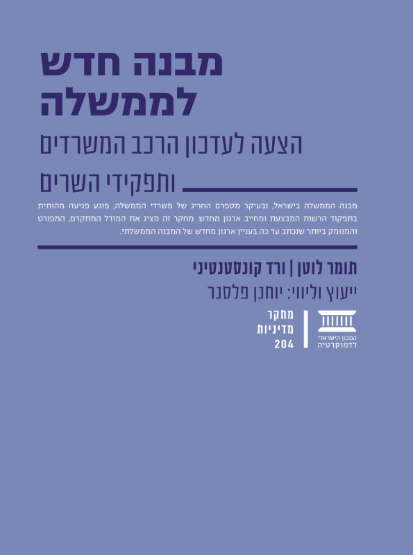מחקר זה מציע מבנה ארגוני מעודכן, מפורט ומלא למערך המקצועי של הממשלה, לרבות עדכון מספרם והרכבם של משרדי הממשלה.