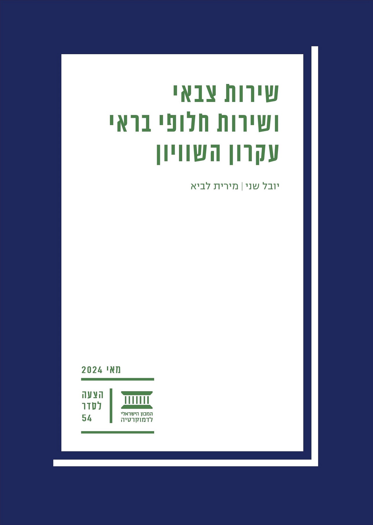 הצעה לסדר זו עוסקת בערך השוויון ובהשפעתו על שאלת מודל השירות הצבאי בישראל. במחקר זה אנו מבקשים לברר מהם ״גבולות הגזרה״ הנורמטיביים שמציב עיקרון השוויון, במסגרת הניסיון לעצב הסדר חדש באשר למודל השירות הצבאי והחלופות האפשריות לו.