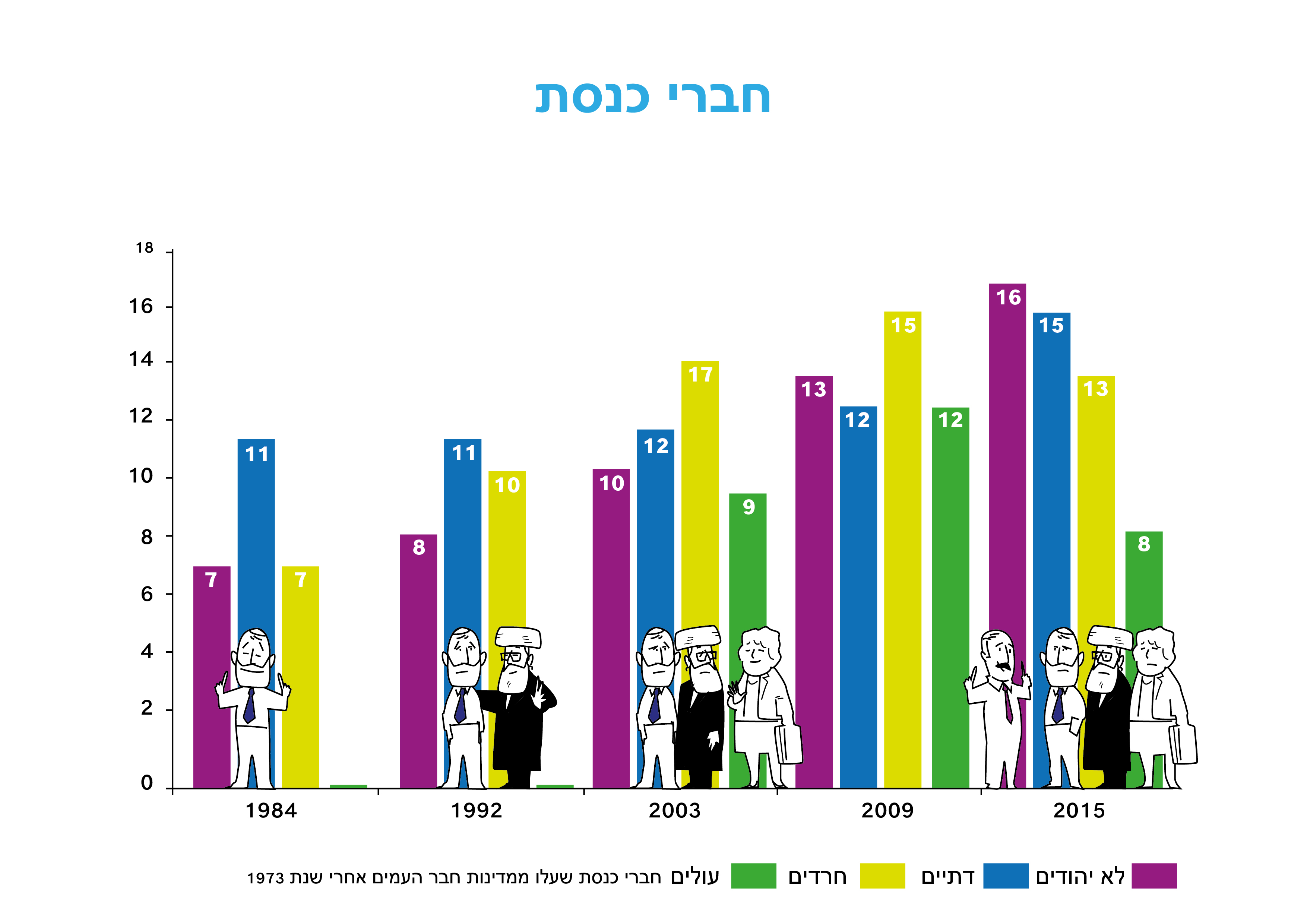 הכּנסת, בית המחוקקים הישראלי, מציינת השבוע את יום ההולדת שלה, הזדמנות טובה בשבילנו להפנות את תשומת הלב לשני היבטים הקשורים בה: ההרכב החברתי של חבריה, וגודלה היחסי.