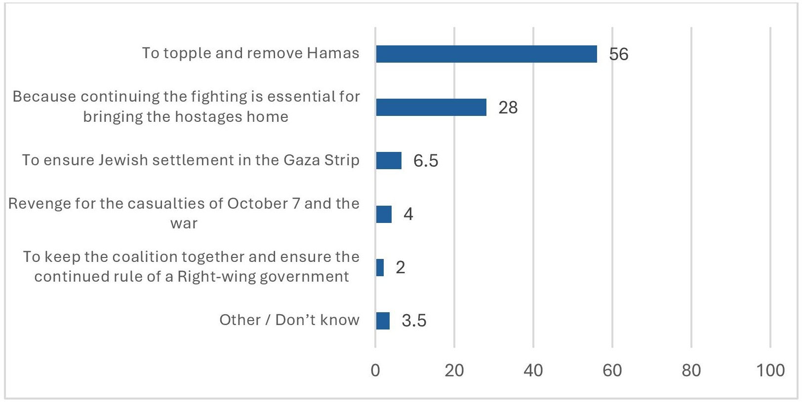 Main reason why the war in Gaza should not be ended (total sample; % of respondents who think the time has not come to end the war)
