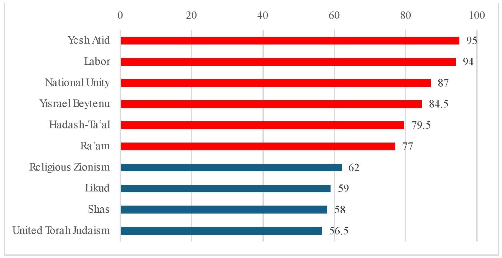 - A particularly interesting finding is that even among those who voted for coalition parties in the 2022 elections, a clear majority of voters for each party support the establishment of a state commission of inquiry to investigate the events of October 7.