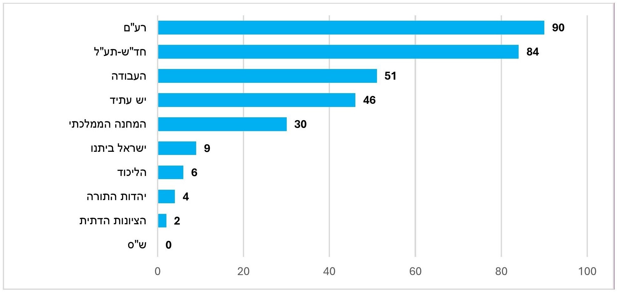 תומכים בצירוף של מפלגות ערביות לממשלה, לפי הצבעה בבחירות לכנסת ב-2022, נובמבר 2025 (%, כלל המדגם)