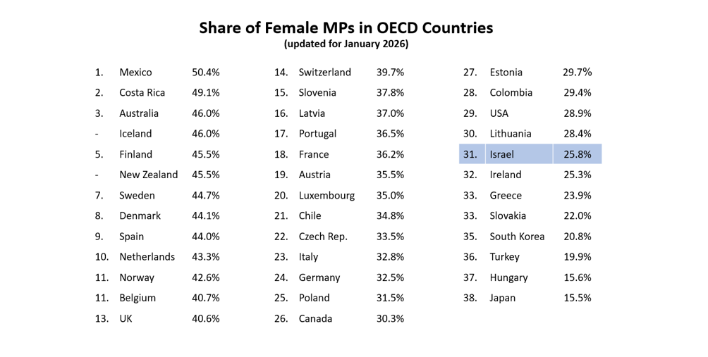 Women’s Representation in Israeli Politics: Analysis for 2026