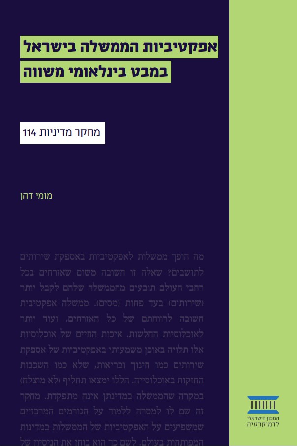 מחקר זה שם לו למטרה ללמוד על הגורמים המרכזיים שמשפיעים על האפקטיביות של הממשלות במדינות המפותחות בעולם. לשם כך הוא בוחן את הניסיון של 34 מדינות חברות בארגון OECD. האם ישנם גורמים, נוסף על עושרן של מדינות, שמסבירים מדוע מדינות סקנדינביות אפקטיביות יותר ממדינות בדרום אירופה, למשל איטליה, ספרד או יוון? חקירה זו נועדה לספק עדויות אמפיריות שישמשו בסיס לעיצוב מבנה ממשל שמתפקד באופן אפקטיבי לטובת הציבור בישראל. פרופ’ מומי דהן הוא כלכלן; חבר סגל בבית הספר למדיניות ציבורית באוניברסיטה העברית בירושלים ועד לאחרונה עמית בכיר במכון הישראלי לדמוקרטיה. עוסק רבות במחקר הסיבות לָאי־שוויון הכלכלי והשלכותיו.