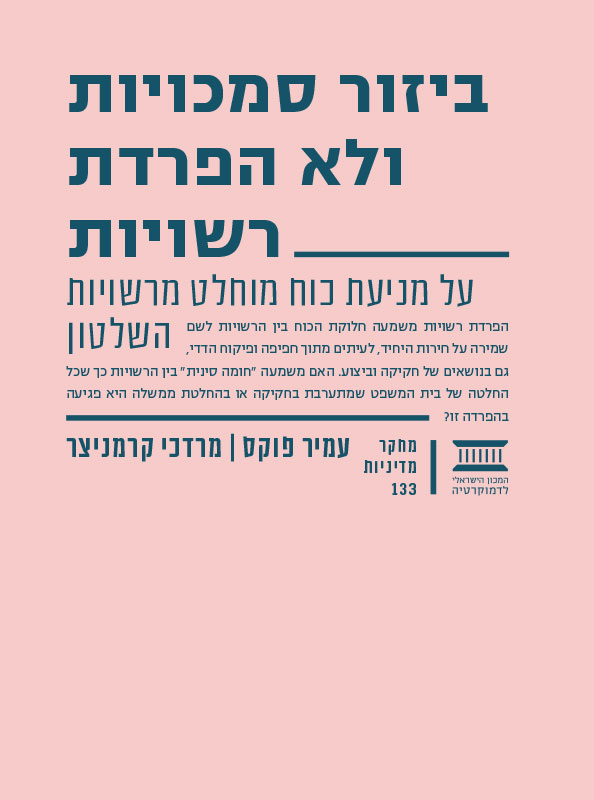 ביזור סמכויות ולא הפרדת רשויות: על מניעת כוח מוחלט מרשויות השלטון
