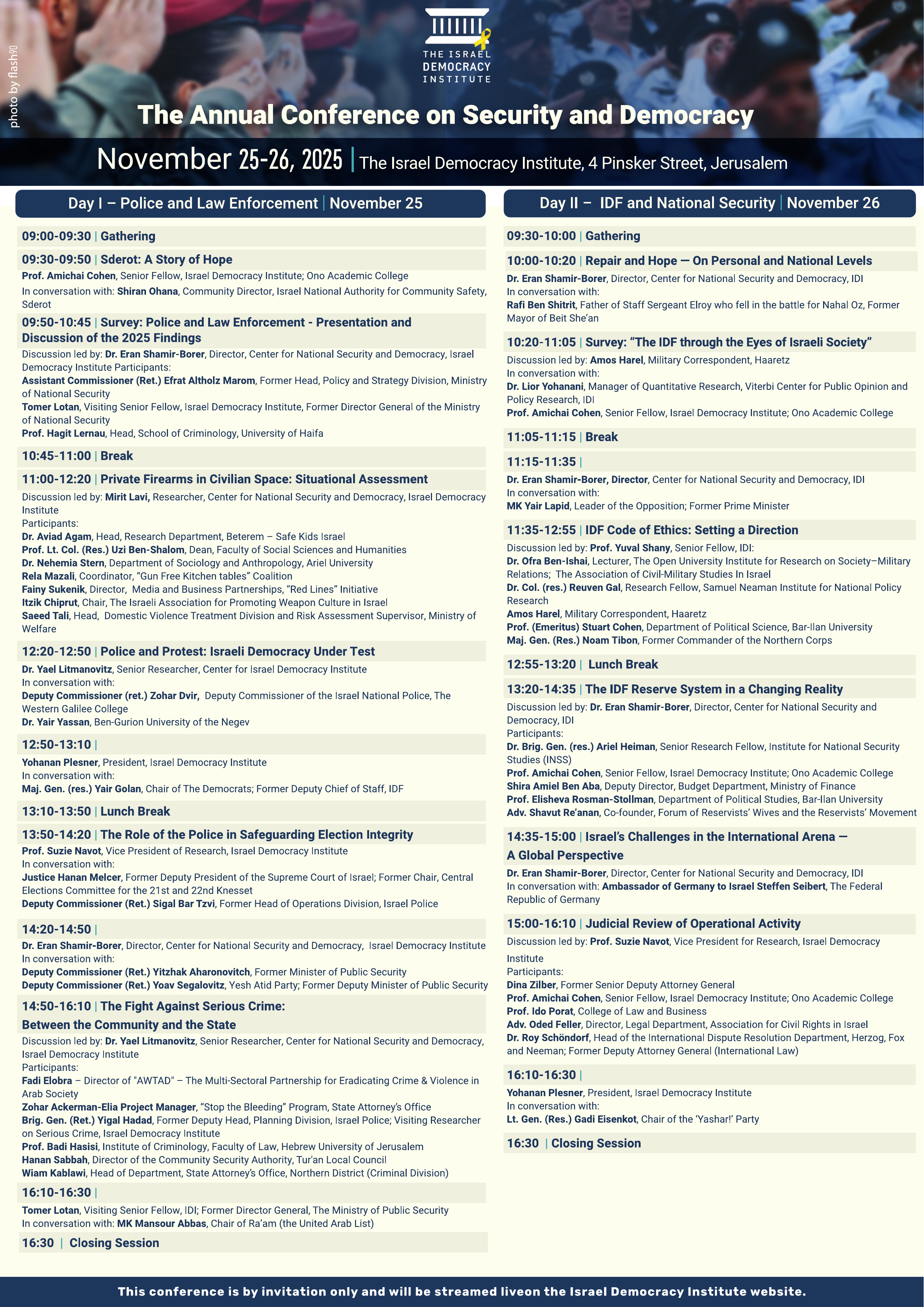 IDI's Center for Security and Democracy, under the leadership of Dr. Eran Shamir Borer, convened its annual conference on November 25 and 26, 2025, providing a forum for in-depth discussions on issues that lie at the intersections between national security, democracy, society and the law.
