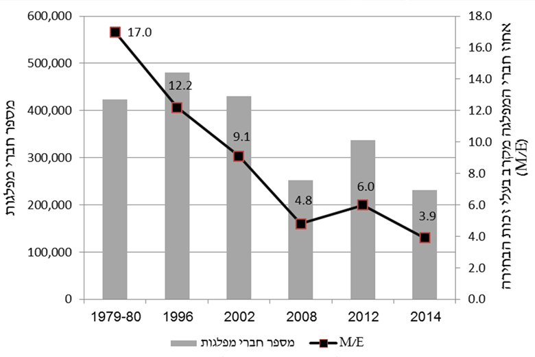 חברי מפלגות בישראלמקור: Rahat and Kenig, 2015: 106